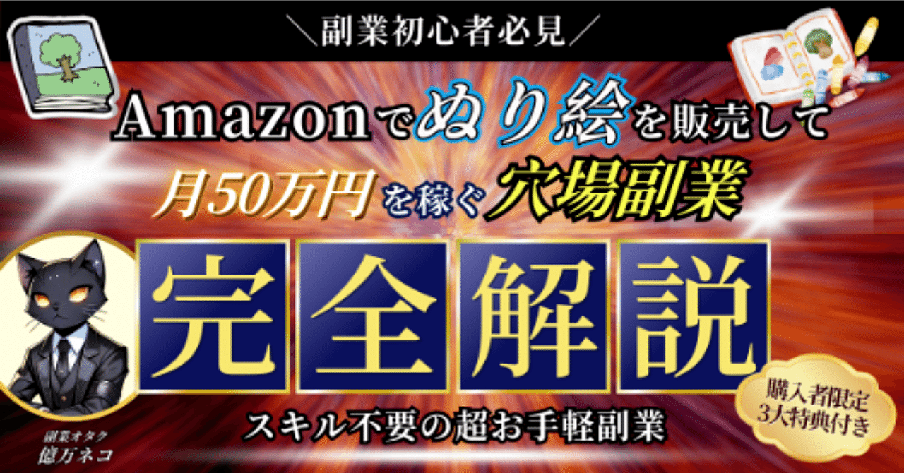 Amazonで「ぬり絵」を販売し、月50万円を稼ぐ副業ノウハウを体系的にまとめた記事です。特別なスキルや在庫を持たなくても、需要のあるジャンルを見極め、独自の商品を出品することで安定した収益を生み出す方法を解説。