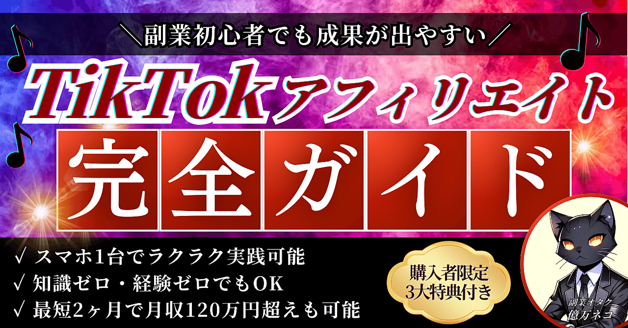 TikTokを活用したアフィリエイト副業の始め方を、スキルゼロの初心者でも実践できるように体系的に学べる内容です。