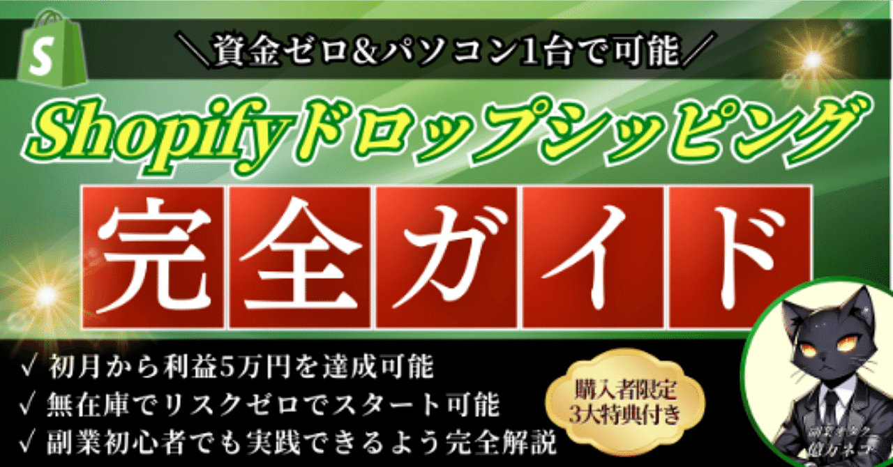 資金ゼロ・パソコン1台から始められるShopifyドロップシッピングの実践ガイドです。在庫を持たずに商品を販売できる仕組みを活用し、初期費用を抑えながら収益化を目指す方法が紹介されています。