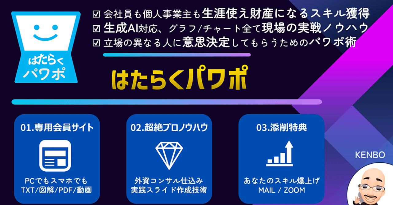 この講座では、単に見栄えの良い資料を作るのではなく、相手の「意思決定」を引き出すためのパワーポイント作成法を学べます。
