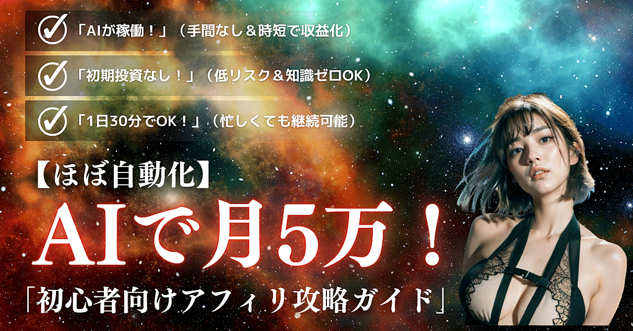 AIを使ったアフィリエイトの仕組みを「ほぼ自動化」する方法を解説した実践ガイドです。記事作成やリサーチ、収益化の流れをAIに任せることで、初心者でも少ない労力で安定した副収入を得ることを目指せます。