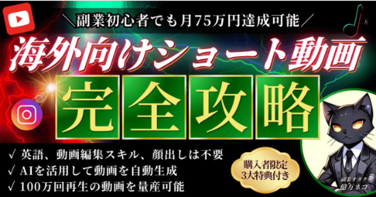 海外向けショート動画を投稿するだけで、スキル不要・顔出しなしでも月75万円を目指せる副業ノウハウが学べます。動画編集や英語力がなくても、AIとテンプレートを活用することで、誰でも再現可能な仕組みが構築可能。