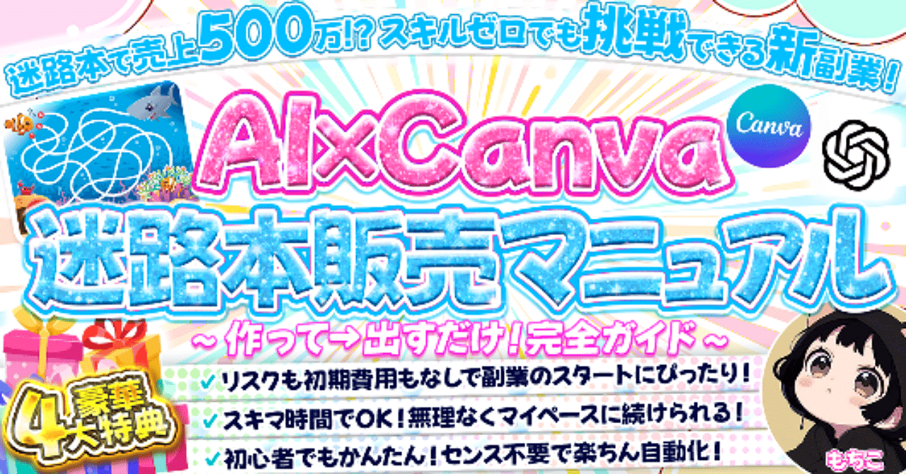 AIとCanva を使って“迷路本”を制作・販売するためのゼロスタートの手順がつかめます。特に、リスクや初期コストをほぼかけずにプロダクトを形にし、市場に出す方法が学べます。