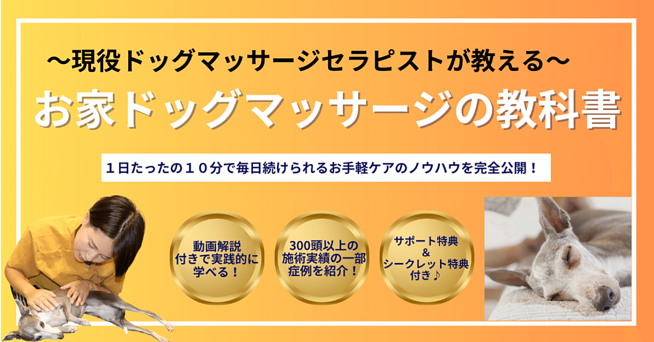 ・ドッグマッサージの必要性:現代の犬が抱える健康問題と、マッサージによる改善事例。 ・犬の体の仕組み:筋肉や関節、リンパの流れなど、基礎知識をわかりやすく解説。 ・マッサージのチェックポイント:普段の体のクセや違和感を見抜く観察力を養う。 ・実践マッサージ(動画付き):頭からつま先まで、10分でできる全身ケアの手順。 ・温活アイテムの活用法:体を温めながら行う応用マッサージで、血流と免疫力を高める。 ・Q&A:よくある疑問や不安に対する具体的なアドバイス。 ・症例紹介:実際にマッサージで改善した犬たちの変化と飼い主の声。