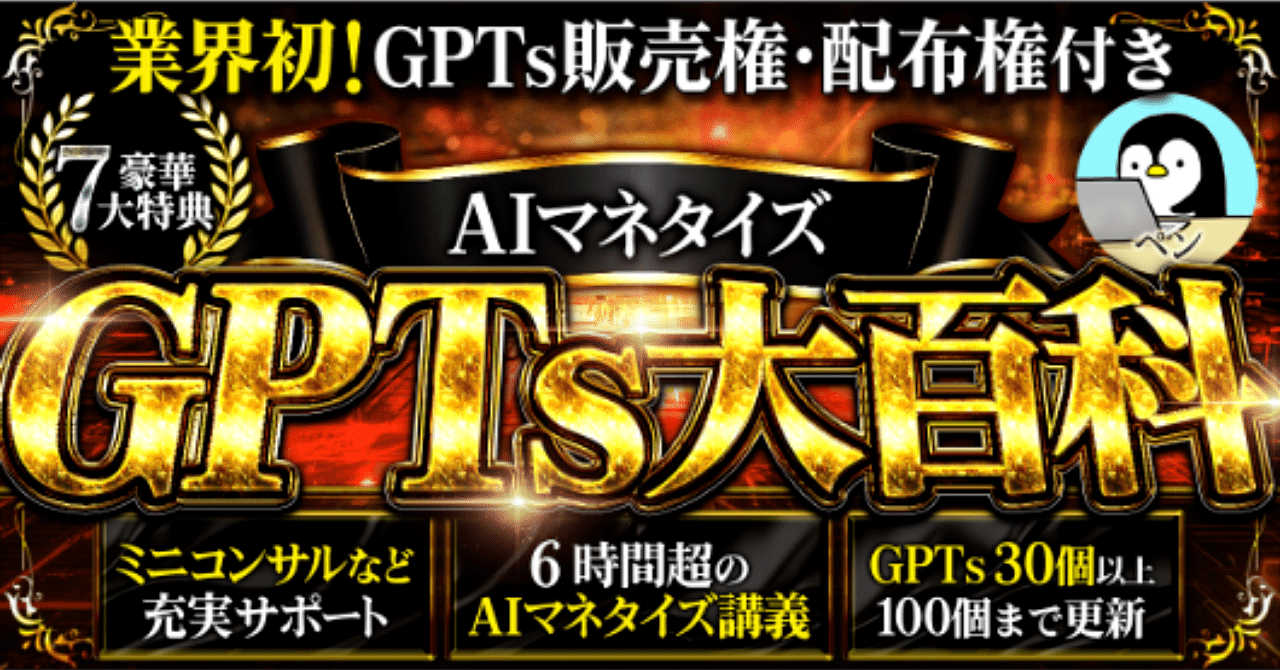 AIに詳しくない初心者でも、自分のコンテンツを使ってマネタイズできるノウハウを体系化した「GPTs大百科」。