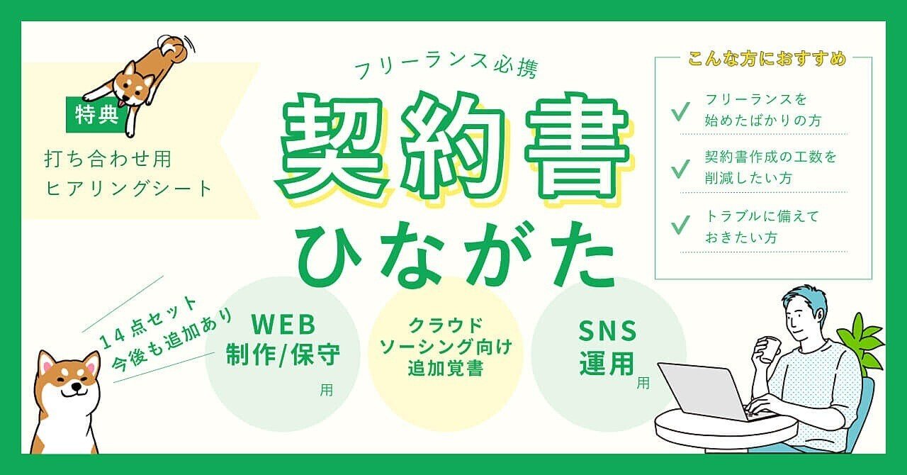 Web制作やSNS運用代行、保守対応などを請け負う側が必要とする「業務委託契約書」のひな形14種類を使えるようになります。