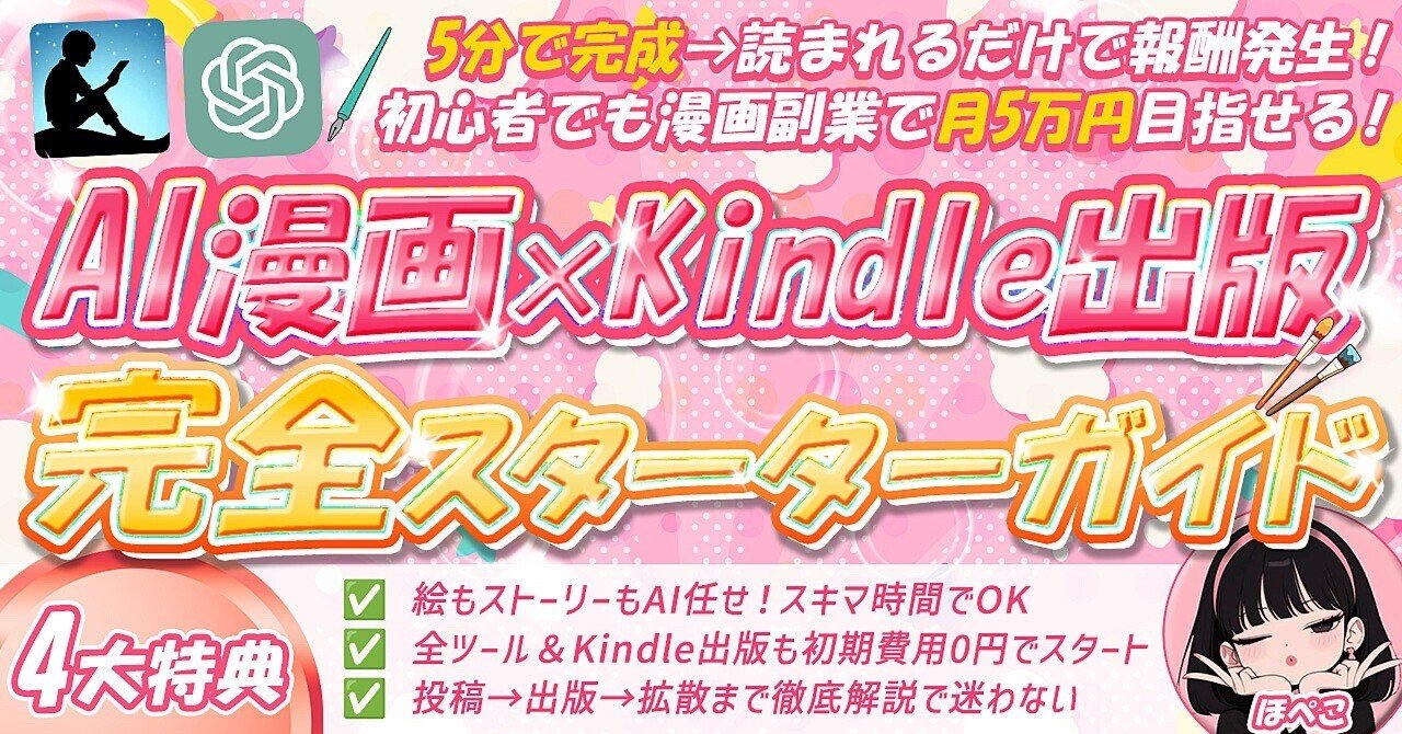 このガイドは「漫画を描きたいけどスキルがない」「出版したいけど方法がわからない」と悩む人に最適です。AIがアイデアを形にしてくれるので、ハードルを一気に下げてくれます。