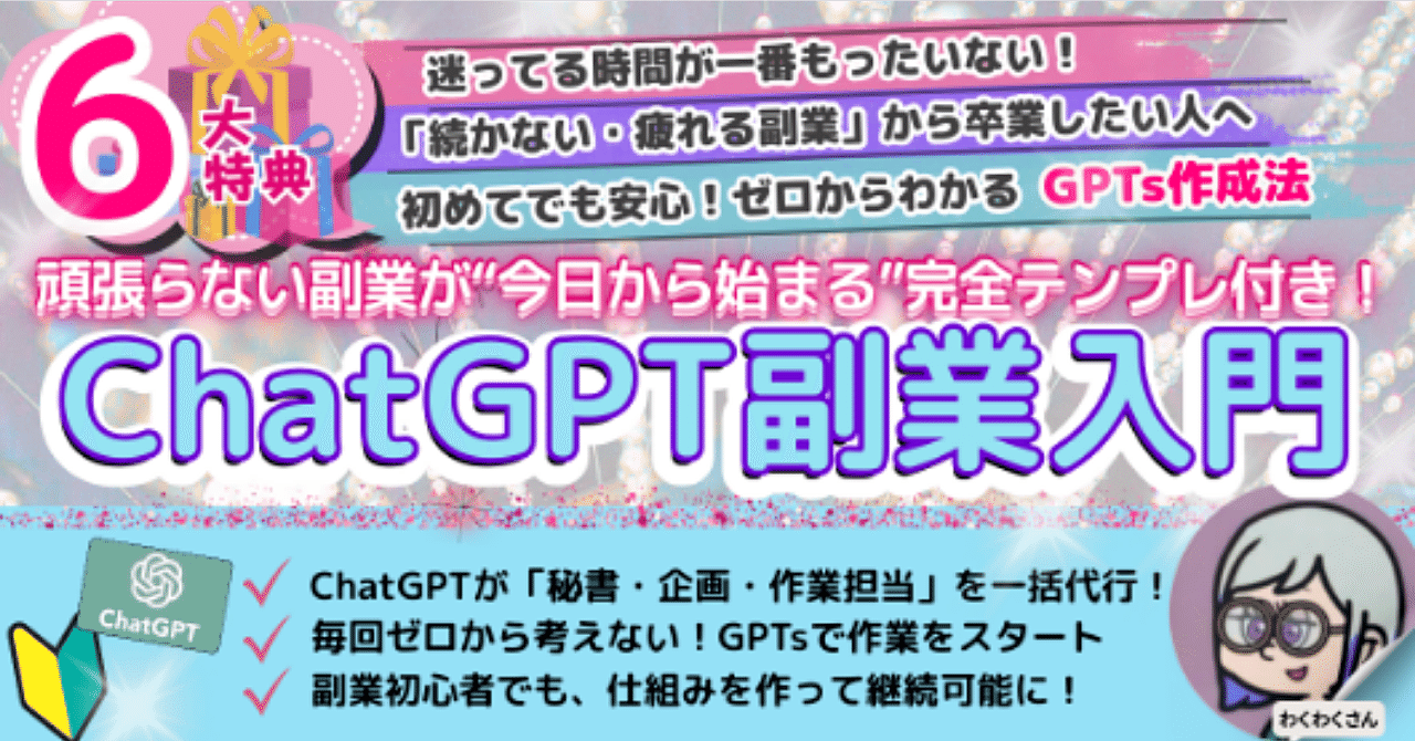 この記事では、副業を効率的に進めるためにChatGPTとGPTsをどのように活用すればよいかを体系的に学べます。