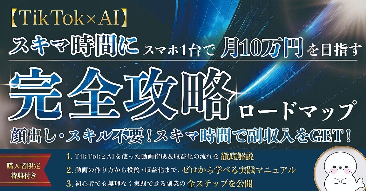 「【Tiktok×AI】スキマ時間にスマホ1台で月10万円を目指す 完全攻略ロードマップ ~顔出し・スキル不要・スキマ時間で副収入をGET!~」