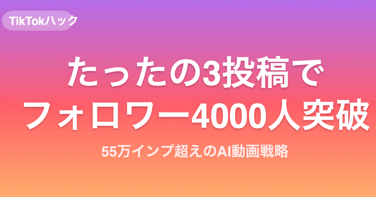 TikTokでのバズを狙うなら、AI動画の設計が鍵。この記事では、たった3本の投稿で55万インプレッション・4000人以上のフォロワーを獲得した実例をもとに、誰でも再現可能な「一貫性AI動画」の作り方が明かされています。