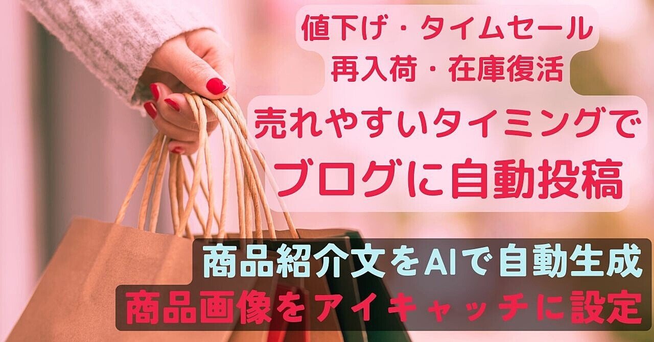 Amazonの商品が値下げ・タイムセール・在庫復活した瞬間に、AIが自動で紹介文を生成し、はてなブログに投稿してくれるアフィリエイトツールの解説記事です。