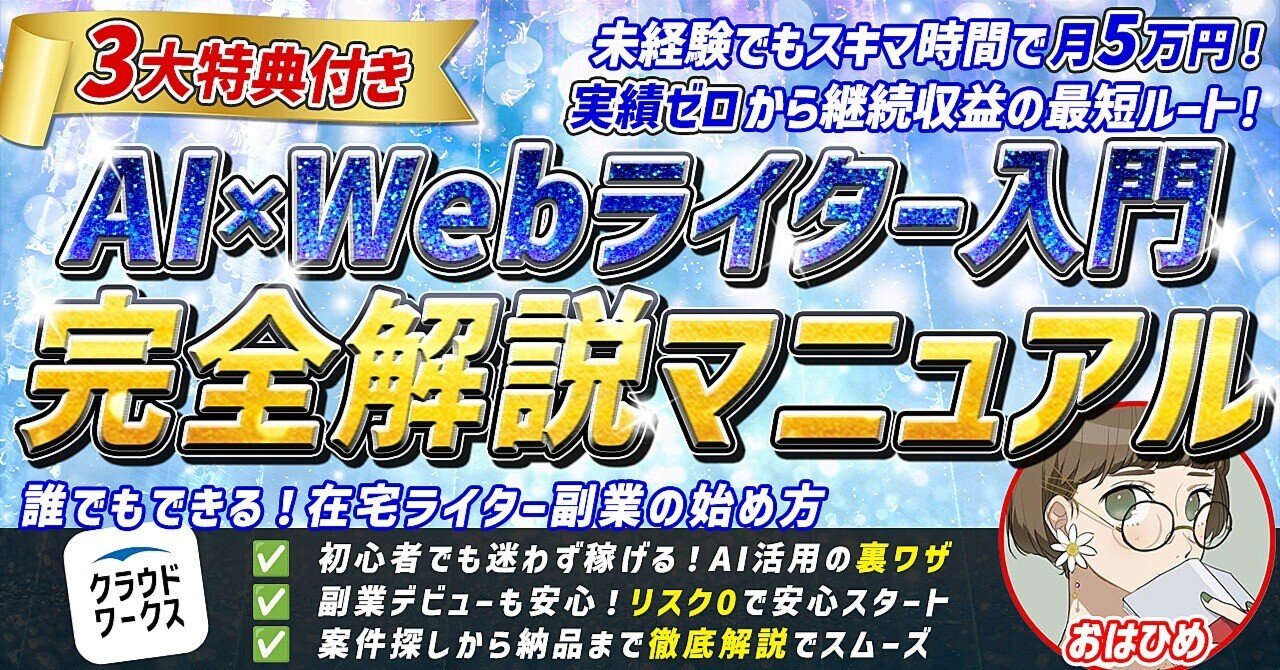 このマニュアルは、文章に自信がない初心者でもAIを味方につけることでWebライターとして成果を出せるようになる実践的な内容です。