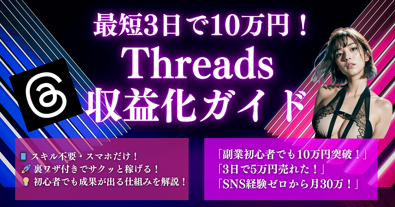しかも Threads という今注目のSNSを活用するので、競合も少なく、初心者でもサクサク稼げる!
