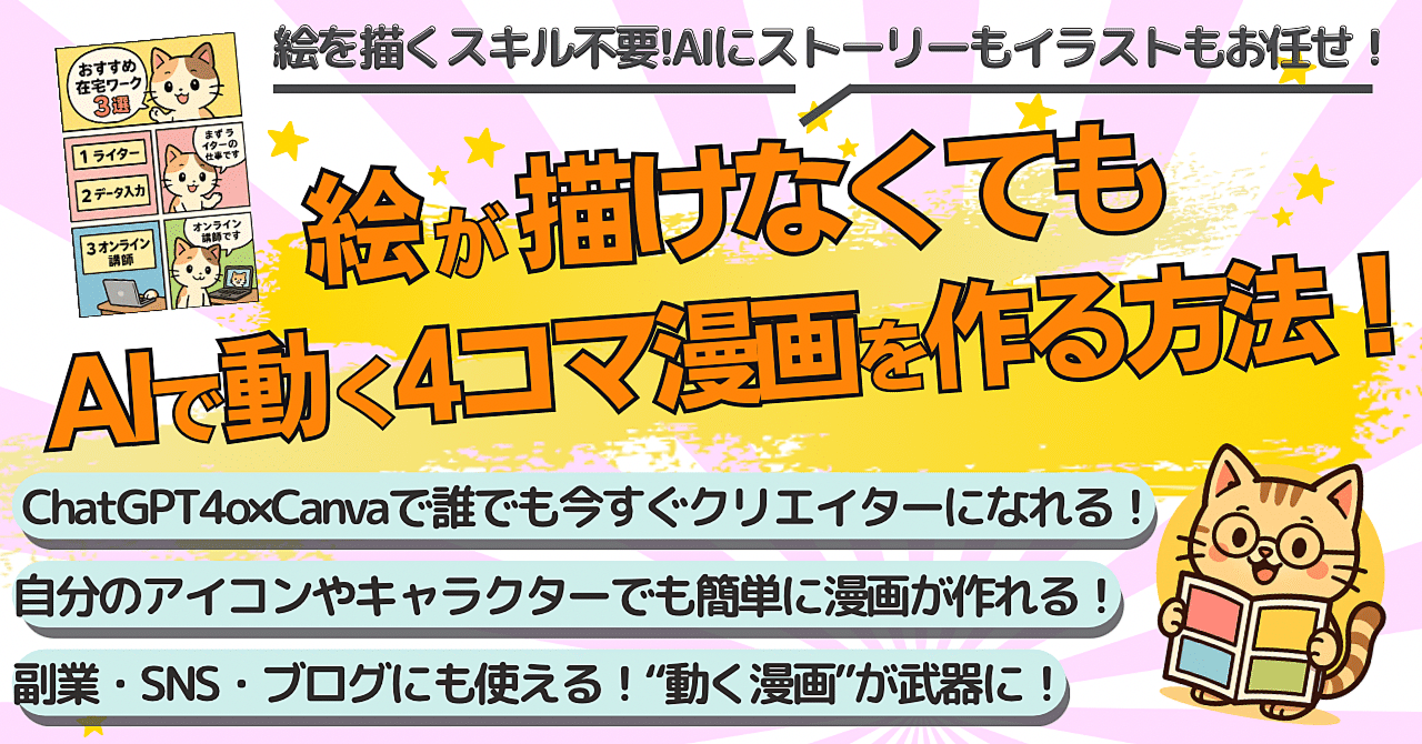 AIの進化によって、絵を描くスキルがなくても、ストーリーを考えるのが苦手でも、誰でも手軽に高クオリティの4コマ漫画を作れるようになりました。