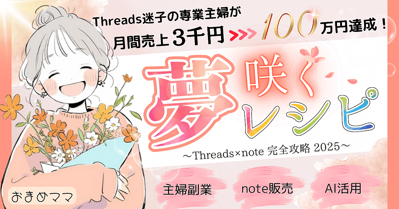 2025年最新版!Threads×note完全攻略ロードマップ【夢咲くレシピ】|副業迷子の主婦が月100万円”稼ぐまでの全戦略