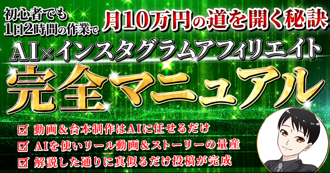 このマニュアルは、Instagramを活用して副業収入を得たい初心者に最適です。ジャンル決めから投稿、AIによる効率化、アフィリエイトでの収益化まで、体系的に学べる実践的な内容が揃っています。