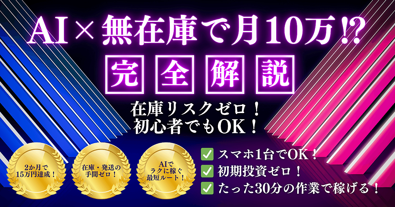 物販に興味はあっても「在庫リスクが怖い」「資金がない」と悩む人に朗報です。本記事では、AIを活用しながら無在庫で収益を生み出す仕組みをわかりやすく解説。