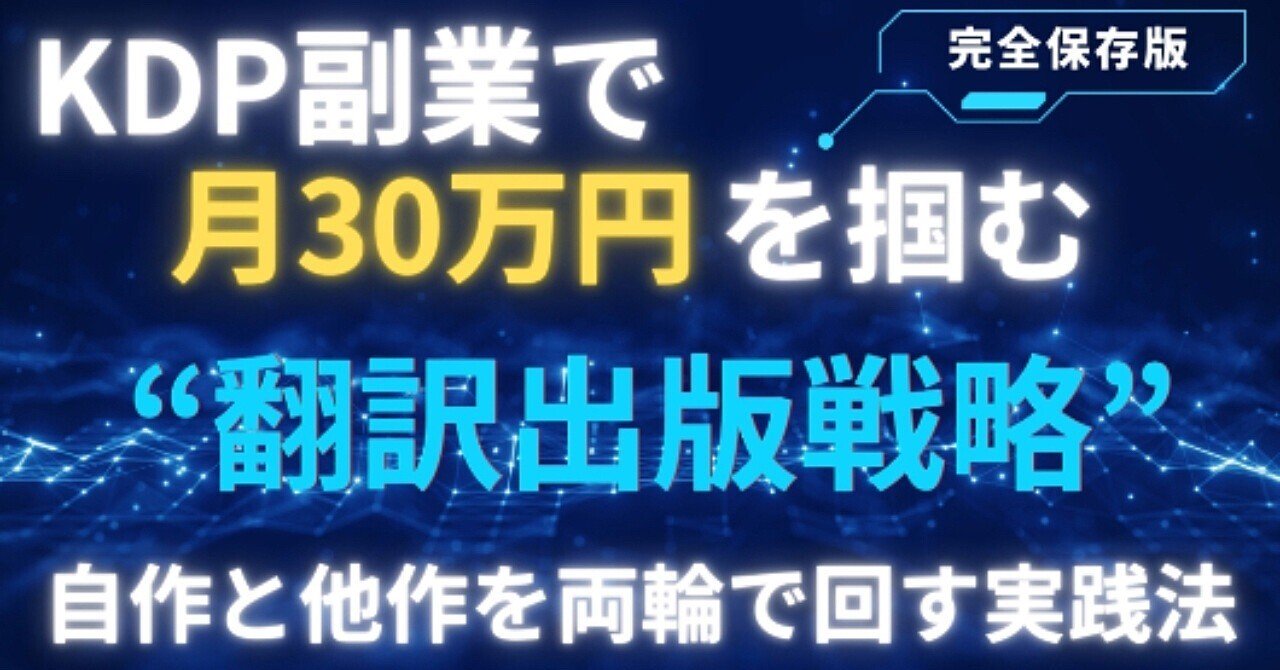 KDPを活用して副業で安定的に収益を得るための実践戦略を学べます。自分で書いた作品だけに頼らず、翻訳出版を取り入れることで、収益源を多角化し、安定した売上を作る方法を解説。