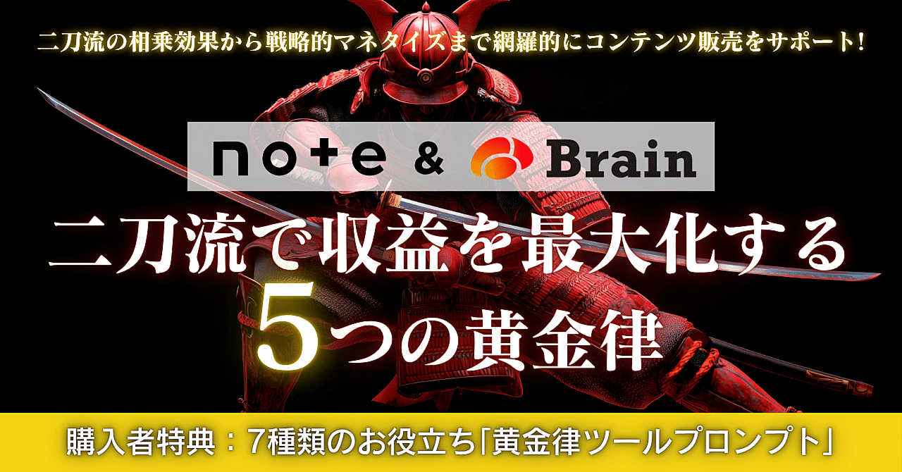 noteとBrainという2つのプラットフォームを掛け合わせて収益を効率的に伸ばす戦略を解説しています。